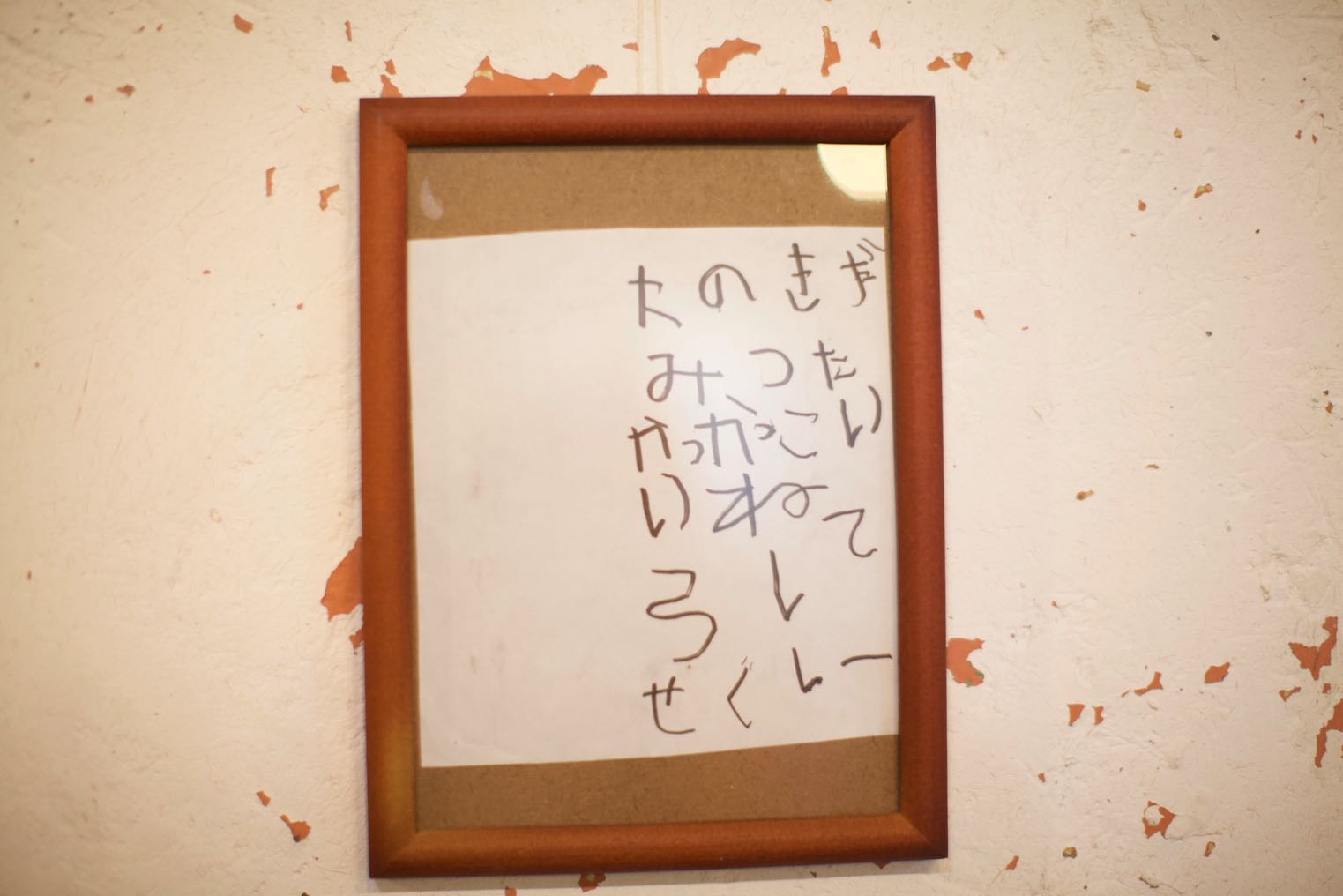 少し前からお店のインテリアに加わった掛け軸的なモノ。