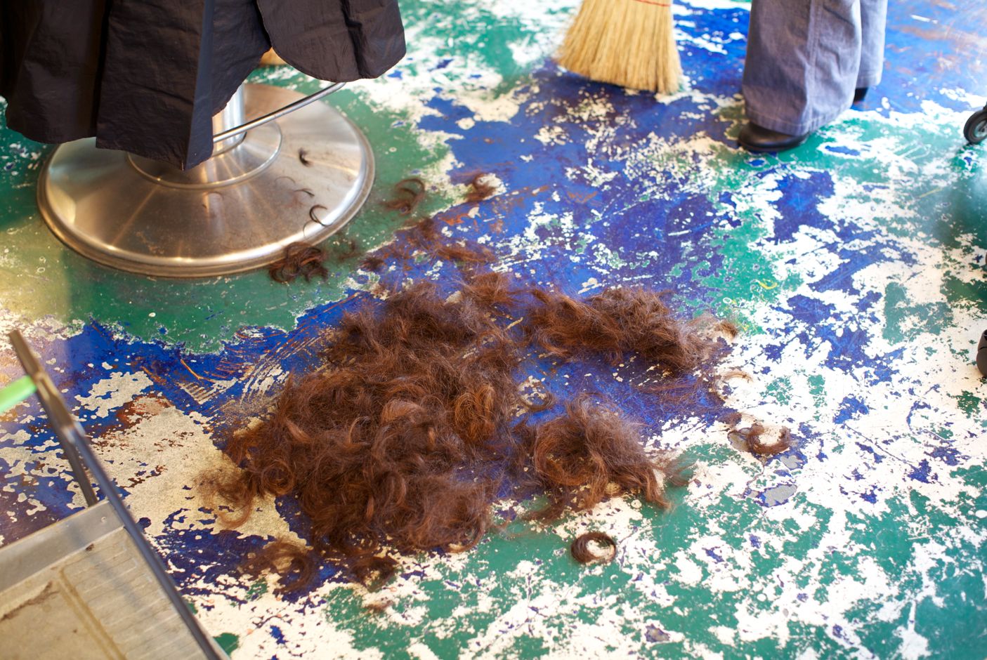 このくらい切りました。 落ちてる毛のクセ具合も素敵だと思います。